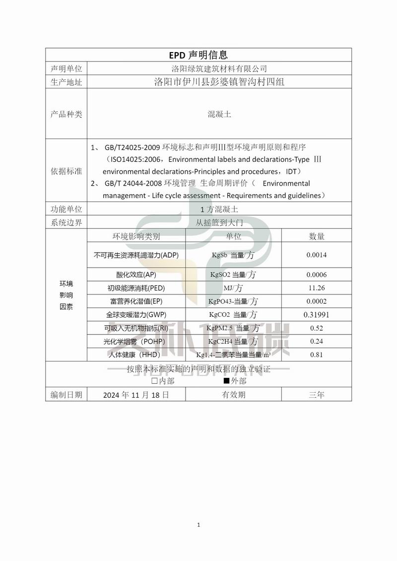 洛陽(yáng)綠筑建筑材料有限公司-EPD報(bào)告