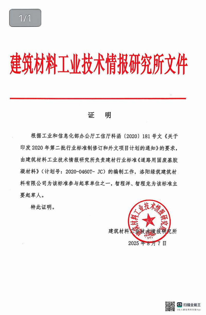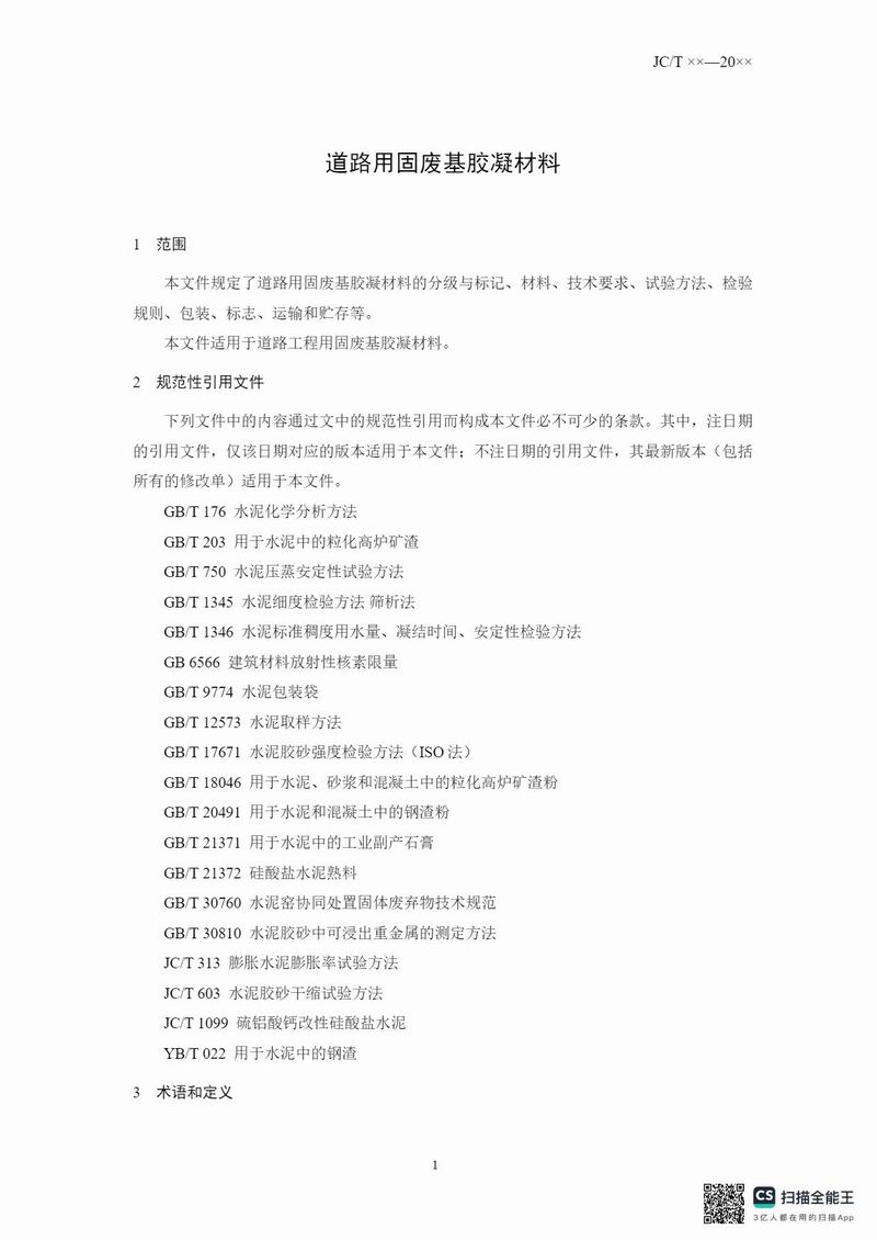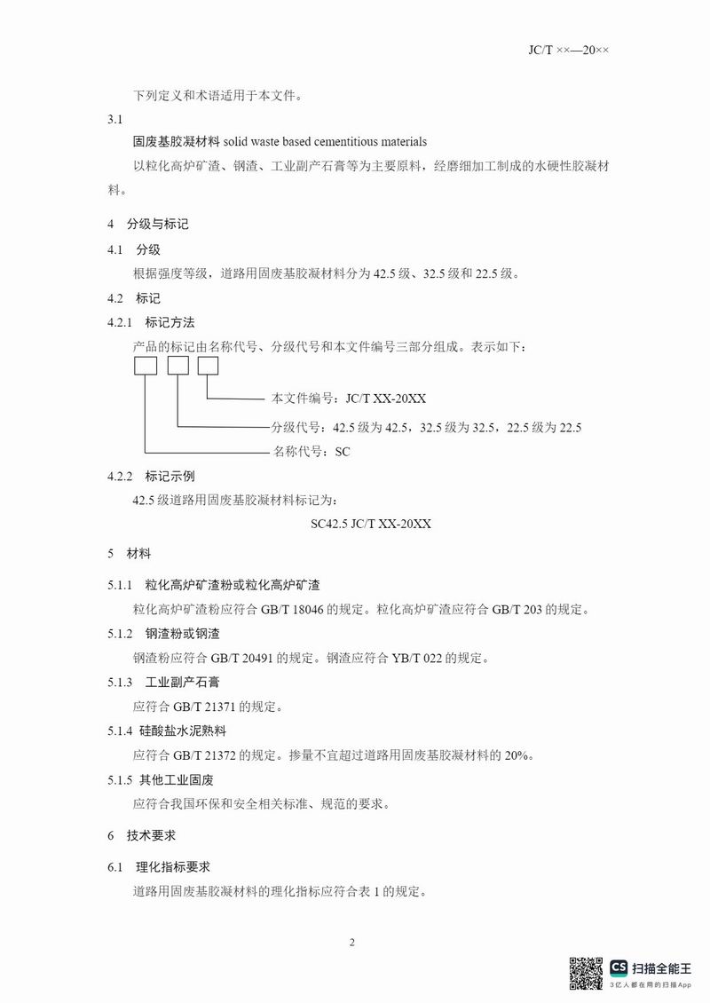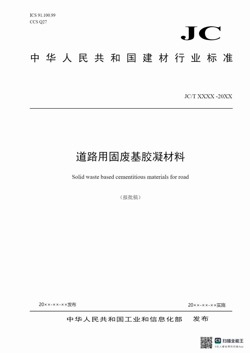 報(bào)批稿《道路用固廢基膠凝材料》行業(yè)標(biāo)準(zhǔn)