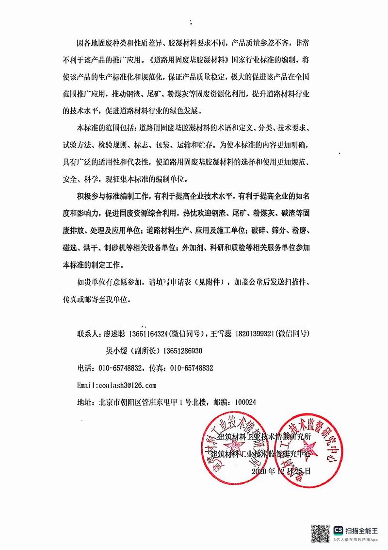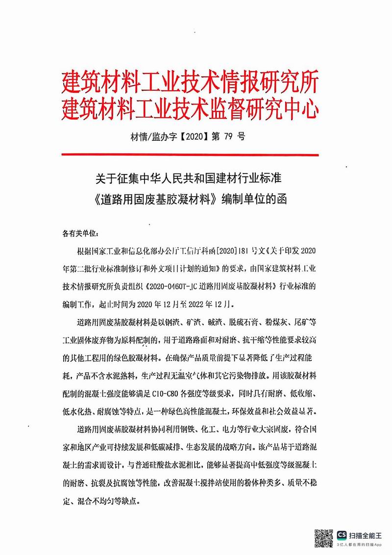 報批稿《道路用固廢基膠凝材料》行業(yè)標準