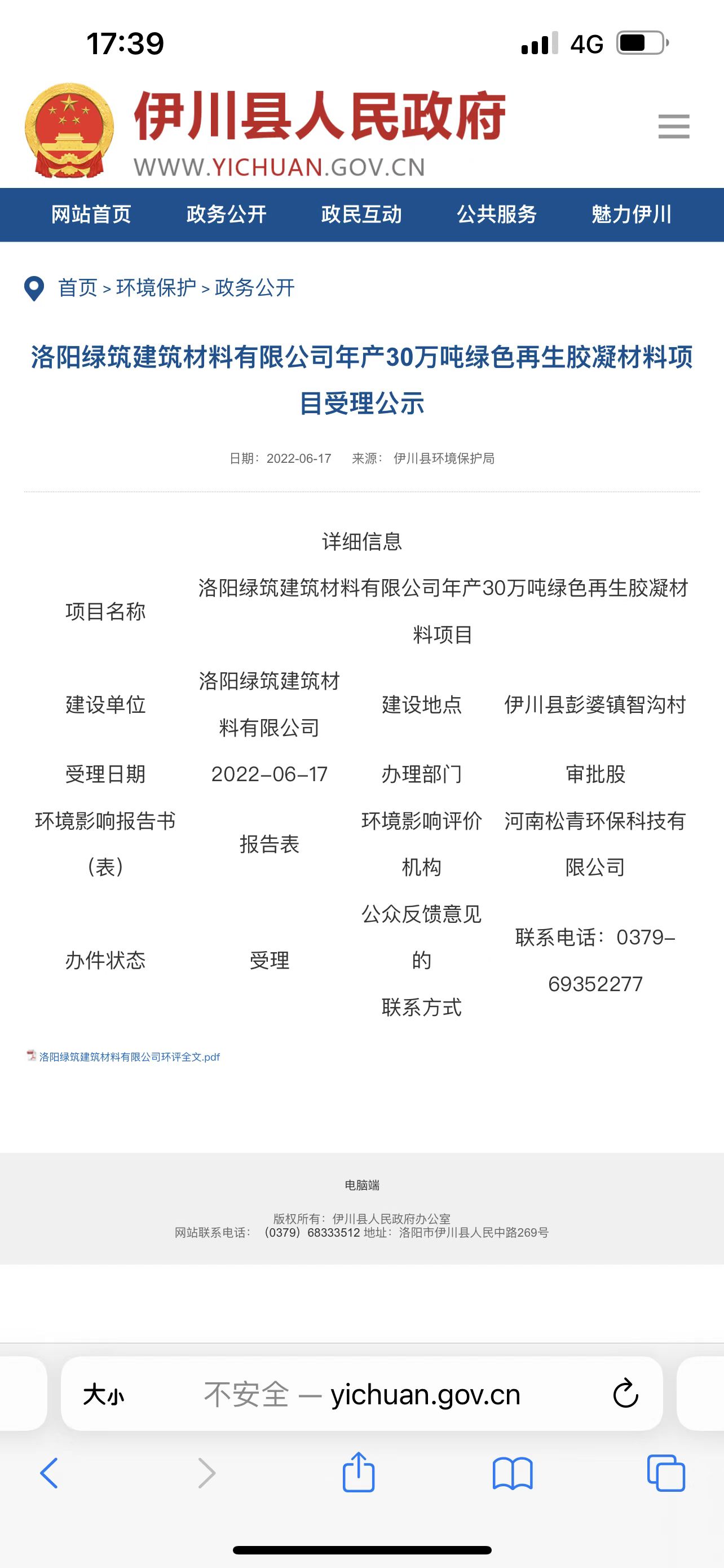 洛陽綠筑建筑材料有限公司年產(chǎn)30萬噸綠色再生凝膠材料項(xiàng)目受理公示