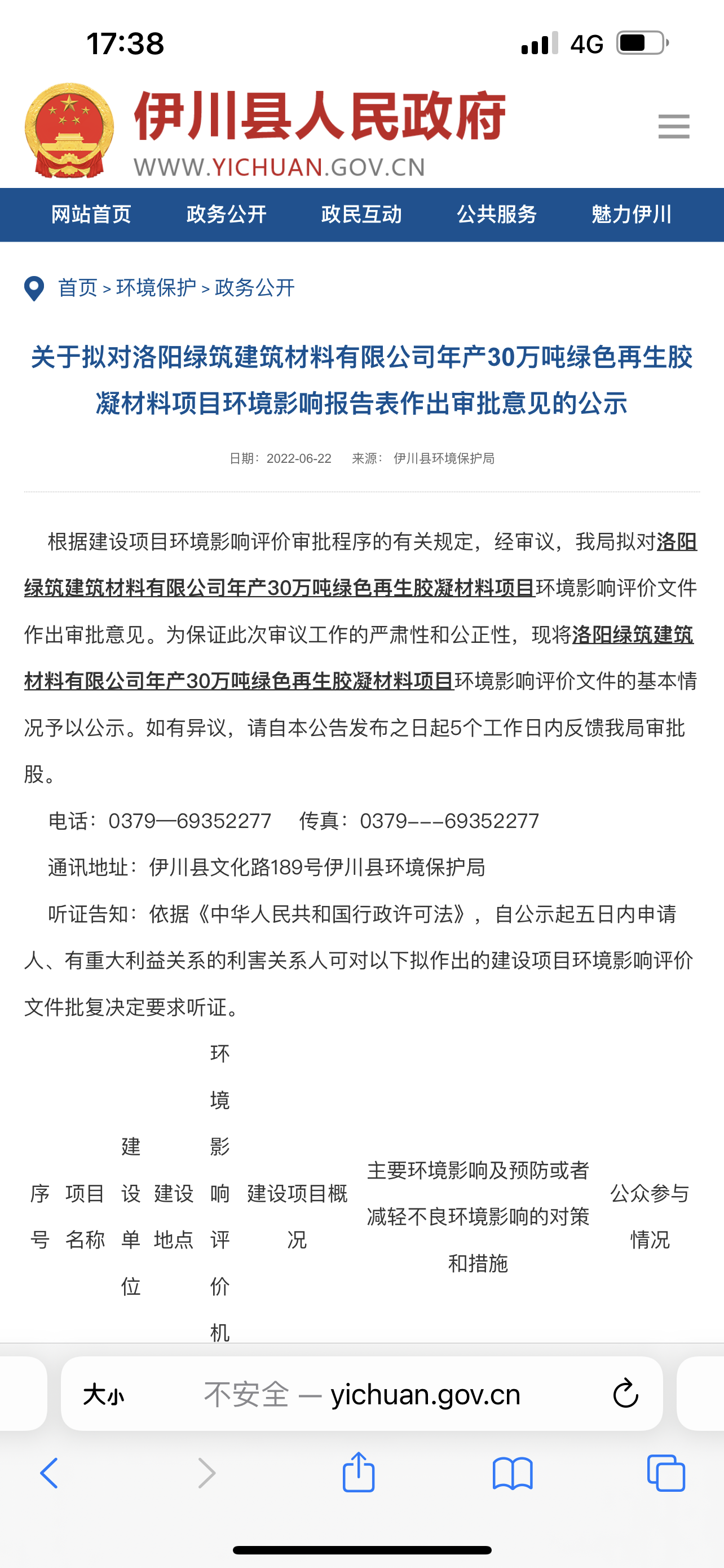 關(guān)于擬對(duì)洛陽(yáng)綠筑建筑材料有限公司年產(chǎn)30萬(wàn)噸綠色再生膠凝材料項(xiàng)目環(huán)境影響報(bào)告表作出審批意見(jiàn)的公示