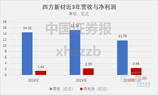 2018-2020年,四方新材分別實現(xiàn)營業(yè)收入14.52億元、15.26億元、11.79億元,凈利潤分別為1.44億元、2.33億元、2.44億元。2021年一季度,公司預(yù)計實現(xiàn)營業(yè)收入2.02億-2.42億元,同比增長36.69%-64.02%;預(yù)計實現(xiàn)凈利潤3054.04萬-3945.32萬元,同比增長33.50%-72.46%。
