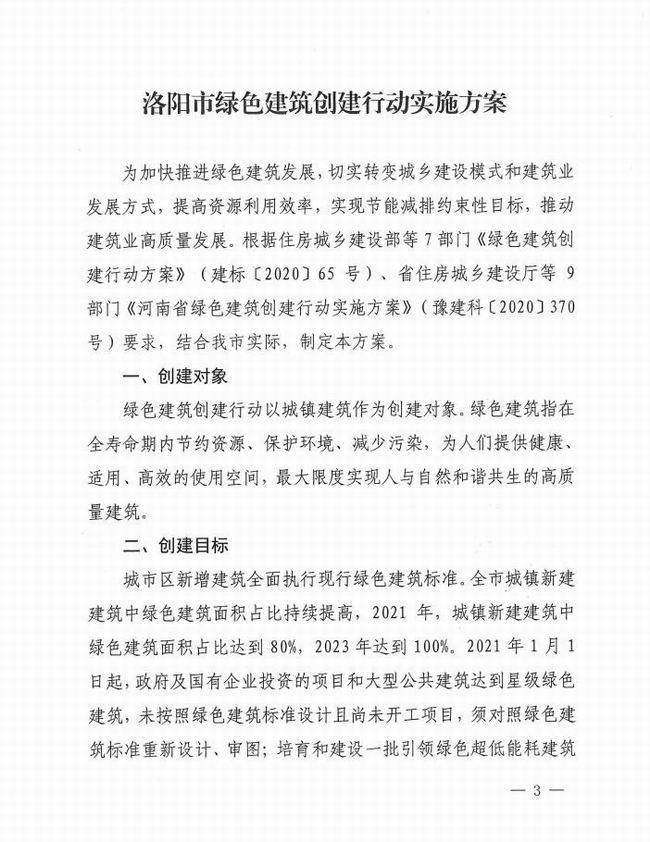 關(guān)于印發(fā)洛陽市綠色建筑創(chuàng)建行動(dòng)實(shí)施方案的通知