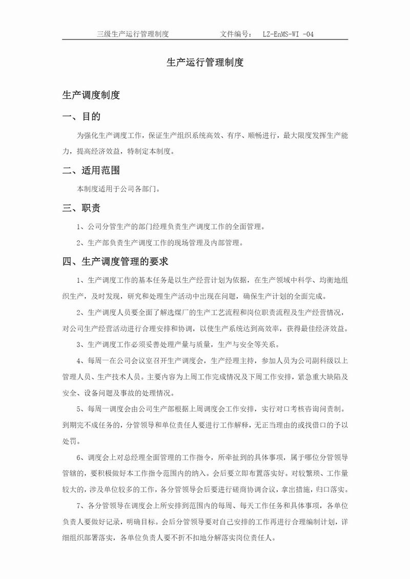 生產(chǎn)運行管理制度