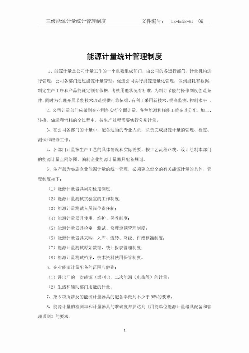 能源計(jì)量統(tǒng)計(jì)管理制度