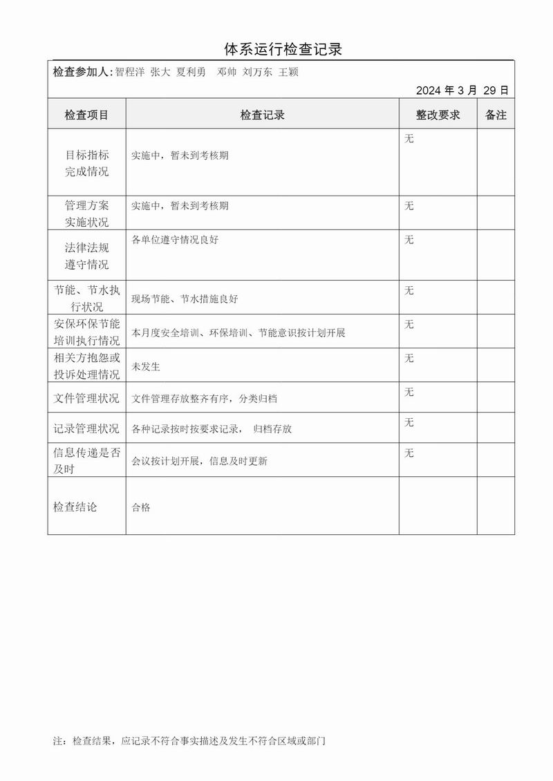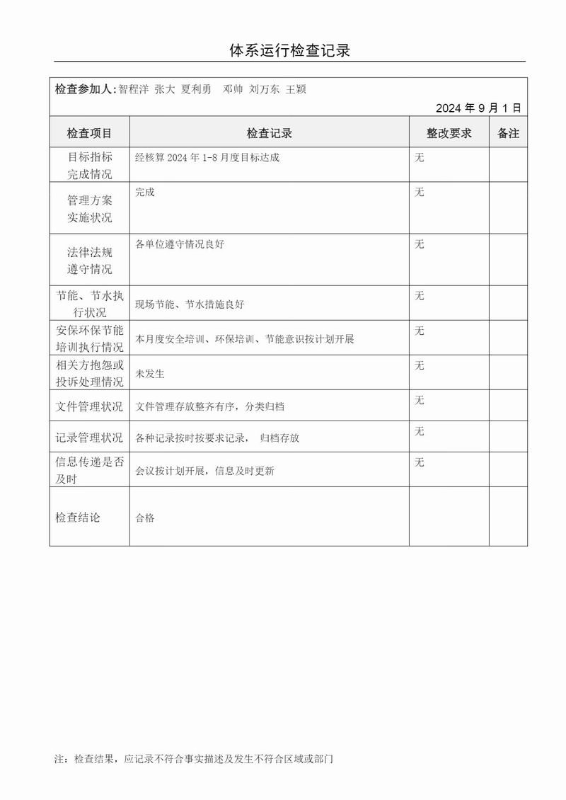 體系運(yùn)行檢查記錄