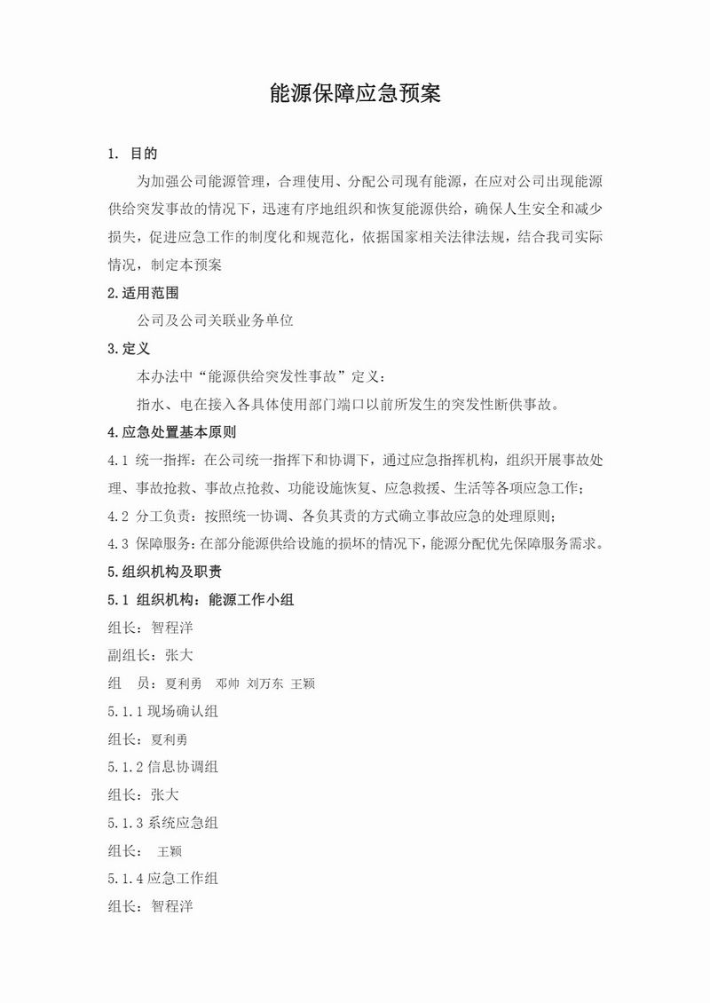 能源保障應(yīng)急救援預(yù)案
